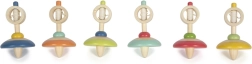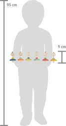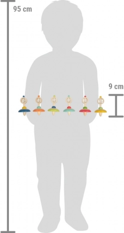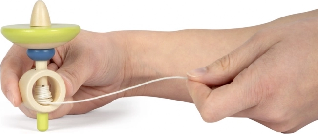 Ta vesela vrtavka v kombinaciji naravnega lesa in izrazitih barv je brezčasna igrača, ki zanesljivo zabava otroke doma in na poti. Zahvaljujoč mehanizmu z vrvico se zlahka zavrti in hkrati spodbuja otroke k urjenju spretnosti in zbranosti. Kakovostna izdelava iz masivnega lesa zagotavlja dolgo življenjsko dobo in varno igro.