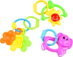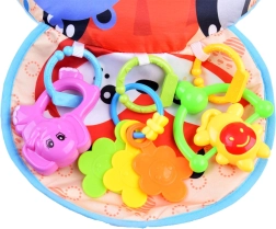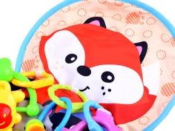 Šumeča mini podloga in pisane ropotuljice razvijajo vid, sluh in tip ter spodbujajo koordinacijo rok.