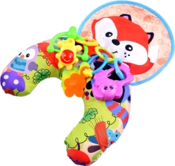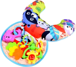 Ta univerzalni otroški valjček je odličen pomočnik doma in na poti. Pri igri na trebuščku ima dojenček pred seboj pripete igrače, ki ga motivirajo k stezanju in dviganju glavice, s čimer naravno krepi mišice hrbta in vratu. Šumeča mini podloga in pisane ropotuljice podpirajo senzorični razvoj in urijo fino motoriko.