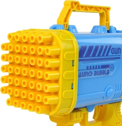 Ta pištola za mehurčke vsako dvorišče, igrišče ali zabavo spremeni v pisano predstavo. Dovolj je, da raztopino nalijete na podlogo, potopite glavo in pritisnete sprožilec – curek bleščečih mehurčkov takoj poleti v zrak. Robusten dizajn v videzu futuristične bazooke je lahek in dobro sede v otroško roko.