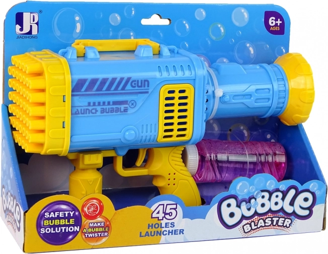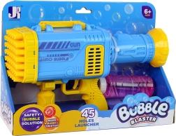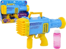 Zabavna bazooka pištola za mehurčke hkrati ustvari desetine do stotine mehurčkov. Zahvaljujoč 45 odprtinam, ergonomskemu ročaju in preprostemu upravljanju sprožilca je idealna za igre na prostem. Priložen je rezervni raztopina 150 ml, varno uporabo potrjujeta certifikat CE in skladnost z EN 71.