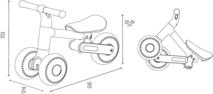 Sedež poganjalca MoMi DEX ima dve višinski stopnji za popolno prilagoditev potrebam otroka.