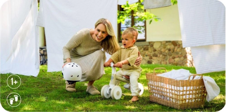 Poganjalec MoMi DEX je namenjen otrokom od 1. leta starosti. Je kompakten, zato je idealen za najmlajše. Je lahek in stabilen. Vožnja nanj pomaga izboljšati ravnotežje in podpira celostni razvoj motorike. Ima nastavljivo višino sedeža in zložljiv okvir, kar olajša prenašanje.