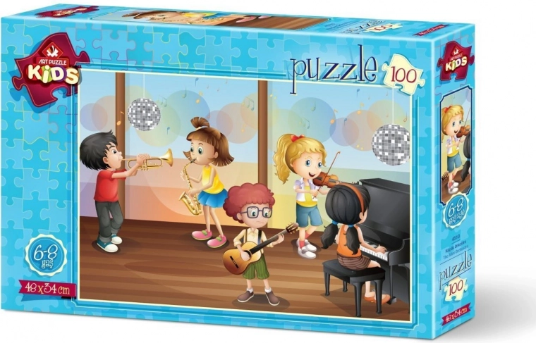 Zabavna sestavljanka z motivom otroškega orkestra bo razveselila male in velike sestavljavce. Vsebuje 100 kosov in ima po sestavljanju dimenzije pribl. 48 × 34 cm. Idealna za razvoj potrpežljivosti, logike in fine motorike ter za skupne družinske trenutke.