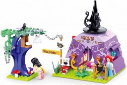 Sestavljanka vključuje čarovniški šotor v očarljivi vijolični barvi z napisi 'MAGIC', idealen za igro in domišljijo.