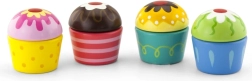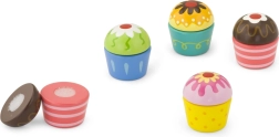 Sprostite otroško domišljijo in dovolite malemu slaščičarju sestavljati lastne sladke kombinacije. Vsak kolaček je sestavljen iz dveh delov, povezanih z ježkom – glazuro in korpus lahko preprosto vedno znova menjate. Idealen dodatek za otroško kuhinjico ter za igro trgovine ali kavarne.