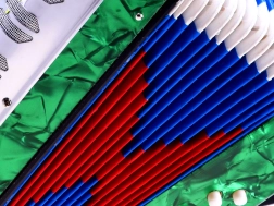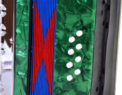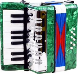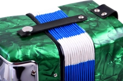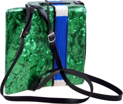 Modro-rdeč meh doda slog, iz instrumenta pa prihajajo čisti, prijetni toni, ki razveseljujejo otroke in starše.