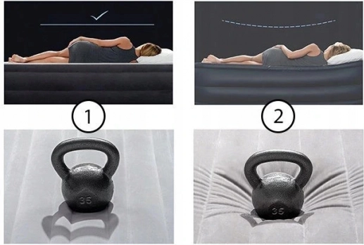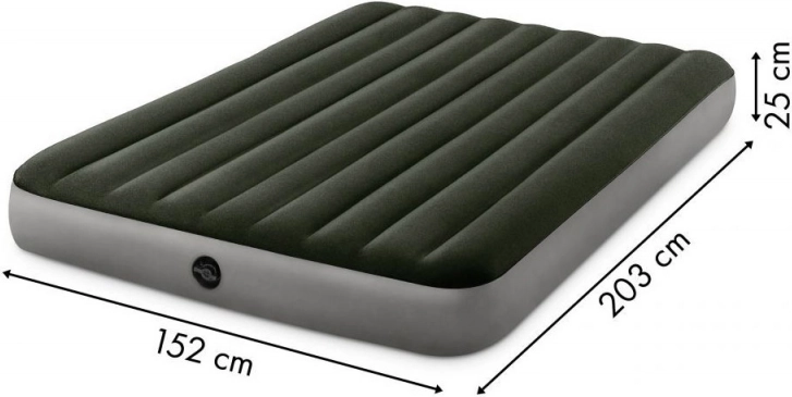 Napihljiva dvojna vzmetnica INTEX je odlična izbira za goste, kampiranje in vsakodnevni počitek. Združuje odporno PVC z mehko, na dotik prijetno velurjevo površino, ki je hkrati vodoodporna in enostavna za vzdrževanje. Mere 203 × 152 × 25 cm ponujajo dovolj prostora za udoben spanec dveh oseb.