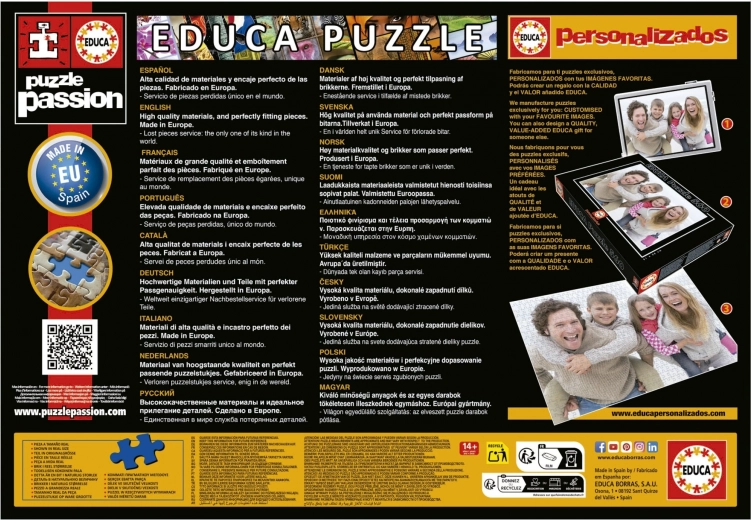 Približna velikost sestavljene sestavljanke: 120 × 85 cm
