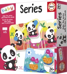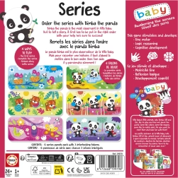 Odkrijte svet zgodb s pando Bimbo! Vsaka kartica predstavlja majhno zgodbico, ki jo otrok dokonča s pravilnim povezovanjem treh velikih koščkov. Otroci tako naravno urijo logično razmišljanje, koordinacijo oko–roka in besedišče.