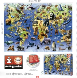 Odkrijte lepoto in raznolikost narave s sestavljanko EDUCA z motivom 100 ogroženih vrst. Zaradi 500 kosov boste uživali v prijetni meri zbranosti in sprostitve, končna slika z dimenzijami pribl. 48 × 34 cm pa bo odlično izstopala na steni ali polici.