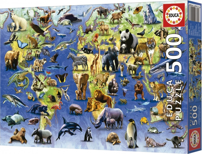 Sestavite motiv 100 ogroženih vrst s priljubljeno sestavljanko EDUCA z 500 kosi. Del pakiranja je lepilo FIX PUZZLE gratis, dimenzije po sestavi približno 48 × 34 cm.