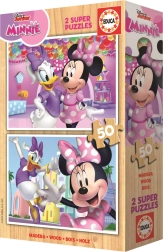Ta komplet prinaša dvojni odmerek zabave: v škatli najdete 2 puzzle po 50 kosov, vsaka po sestavi meri približno 26 × 18 cm. Lesena izvedba je naravna, čvrsta in vzdržljiva, zato prenese tudi pogosto sestavljanje. Privlačna motiva priljubljenih junakinj MINNIE in DAISY spodbujata otroke k ponovnemu igranju.