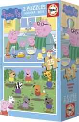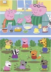 Ta komplet vsebuje 2 leseni sestavljanki z enakim številom kosov in enakimi merami, idealni za urjenje fine motorike, koncentracije in logičnega razmišljanja. Priljubljeni liki iz risanke Prašiček Peppa otroke takoj pritegnejo in motivirajo k sestavljanju.