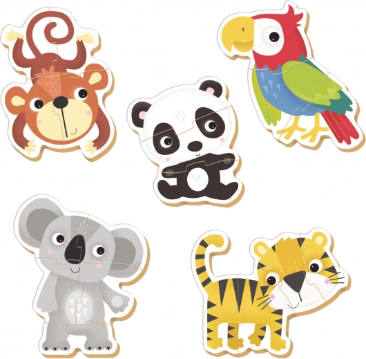 Odkrijte zabavne obrisne baby sestavljanke za najmlajše od 24 mesecev. Pakiranje vsebuje 5 progresivnih sestavljank z motivi divjih živali (3–5 koščkov). Veliki in čvrsti koščki so otrokom enostavni za držanje, spodbujajo fino motoriko, pozornost in domišljijo.