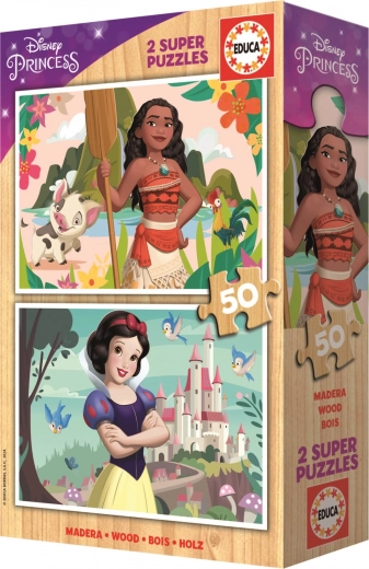 Lesene sestavljanke Disney princese Vaiana in Sneguljčica 2×50 kosov