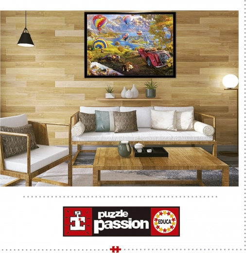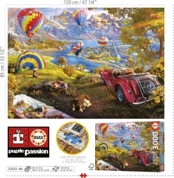 Odkrijte sprostitev in izziv v enem s to vrhunsko sestavljanko znamke EDUCA. Na 3000 koščkih se razprostira slikovita pokrajina z jezerom, pisanimi toplozračnimi baloni in klasičnim rdečim kabrioletom ob pikniku. Po sestavljanju dobite impresivno sliko velikosti pribl. 120 × 85 cm – idealno za uokvirjanje in okrasitev notranjosti.