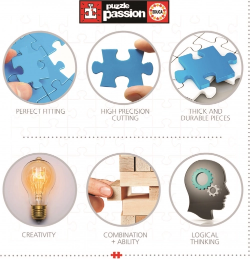 Končni motiv deluje mirno in navdihujoče, zato je odličen kot dekoracija za steno. Zahvaljujoč natančnemu izrezu in kakovostnemu kartonu znamke EDUCA se koščki natančno zaskočijo in držijo obliko.