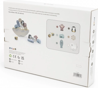 Igra je izdelana iz kakovostnega lesa in je idealna za razvoj spretnosti otrok že od najzgodnejših let. Kombinacija barv in motivov arktičnih živali pritegne vsakega otroka ter podpira njegovo logično razmišljanje in prepoznavanje živali. Varna igra brez ostrih robov omogoča brezskrbno uporabo.