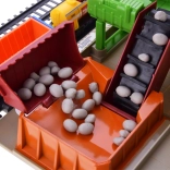 Ustavite vlak pri postaji in s pomočjo mehanskih elementov naložite kamenčke v vagon. Otroci bodo urili fino motoriko in domišljijo ter doživeli realistično »rudarsko« operacijo.