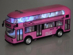 Vesel rožnat dvonadstropni avtobus bo zagotovo navdušil marsikaterega malega voznika in ljubitelja teh vozil. Ta realističen dvonadstropni avtobus je izdelan zelo natančno v prijetni rožnati barvi iz kakovostne plastike. Avtobus zagotavlja zabavo zahvaljujoč zvokom in svetlobnim efektom. Vrata se odpirajo, za steklenimi okni pa so sedeži in volan, zato je igra še bolj realistična. Prednost dvonadstropnega avtobusa je funkcija pull-back. Dovolj je, da igračo potegnete nazaj po podlagi na zadnji ali sprednji osi in avtobus se začne premikati.