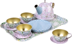 Komplet je izdelan iz kovine in odlično posnema pravi jedilni in kavni servis. Čajni in kavni komplet zagotavlja odlično zabavo, povezano z učenjem.