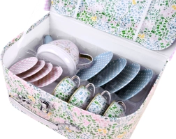 Pravi čajni komplet, namenjen otrokom za igro hiše, kavarne ali restavracije.