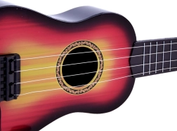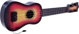 Ta otroška kitara je odlična izbira za male glasbene navdušence, ki želijo odkrivati svet tonov in akordov. Zahvaljujoč kompaktnih meram jo otroci zlahka držijo, plastično ohišje v imitaciji lesa deluje elegantno in trpežno. Štiri kovinske strune in preprosta regulacija na vratu pomagajo doseči čistejši zvok ter spodbujajo k nadaljnjemu igranju.