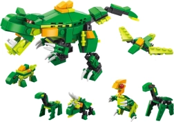 Gradbeni set z motivom dinozavrov je odlična izobraževalna igrača, ki razvija otroško ustvarjalnost, potrpežljivost in ročne spretnosti. Zaradi možnosti sestaviti šest različnih modelov si lahko otroci privoščijo ure ustvarjalne igre, priložena navodila pa zagotavljajo, da bo sestavljanje enostavno in zabavno. Prevladovanje zelene barve modelom daje privlačen videz, ki še dodatno spodbuja igro. Ta set je idealno darilo za vse male ljubitelje dinozavrov in gradbenih kock.