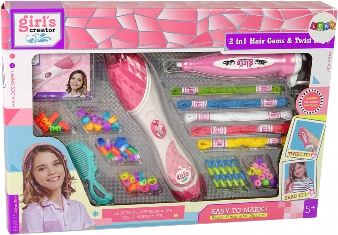 Spletajte, sukajte in okrašujte. Poseben aplikator za perle in orodje za twiste olajšata ustvarjanje kreativnih pričesk tudi začetnikom.