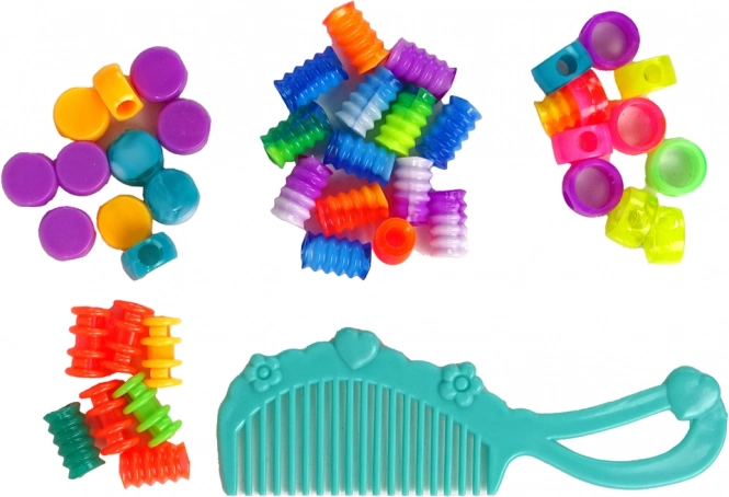 Ta celovit komplet za okraševanje las otrokom omogoča, da izrazijo svojo domišljijo. S pomočjo dveh orodij za nanašanje perel in sukanje niti boste zlahka ustvarili izvirne pričeske – od subtilnih kitk z barvnimi nitmi do izrazitih vzorcev s perlami.