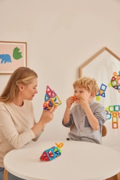 Odkrijte nove možnosti z Magformers PLUS 14 – osnovnim kompletom, ki prinaša razširjene možnosti gradnje z MINI deli. Deli so zasnovani tako, da urijo fino motoriko, spodbujajo ustvarjalnost in učijo otroke prepoznavati barve ter osnovne geometrijske like.