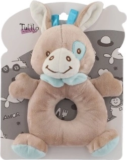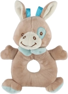 Ta lahka in udobna ropotuljica za dojenčke združuje mehak pliš s premišljeno obliko. Osliček z osrednjo odprtino lepo sede v roko in podpira razvoj fine motorike ter senzoričnega zaznavanja. Nevtralna rjavo-modra barvna kombinacija je odlična izbira za deklice in dečke.
