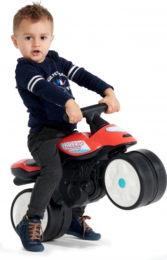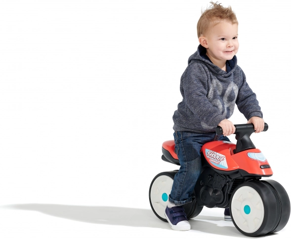 Stajliš poganjalec Falk Baby Moto Team Bud Racing v rdeči barvi je odlično prvo vozilo za male voznike. Zahvaljujoč tihim gumijastim kolesom je primeren za stanovanje in vrt, malčkom pa pomaga razvijati stabilnost, motoriko in samozavest. Nizko težišče in višina sedeža 29 cm zagotavljata udobno sedenje in varno vožnjo.