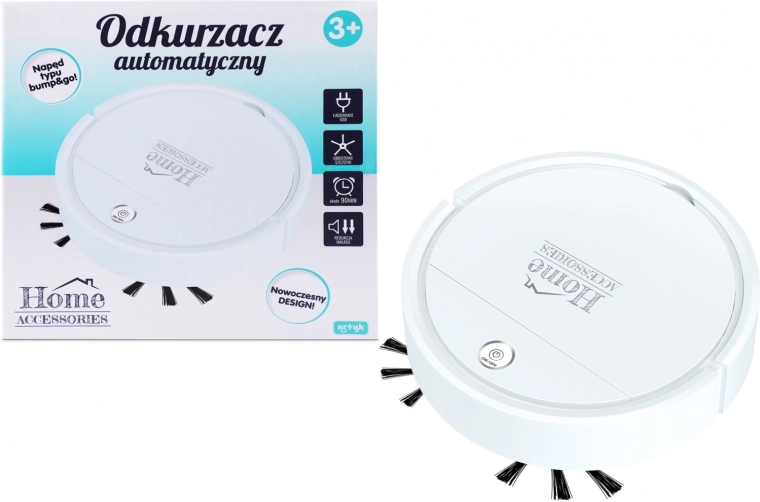 Praktičen robotski sesalnik za vsakodnevno čiščenje trdih tal in nizkih preprog. Ponuja samodejno sesanje, odstranljiv zbiralnik s filtrom, realističen zvok sesalnika in pametno gibanje bump’n’go. Upravljanje je preprosto zahvaljujoč osvetljenemu gumbu za vklop/izklop in vrtečim se stranskim krtačam za učinkovit zajem nečistoč.