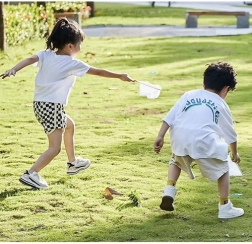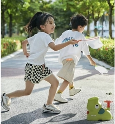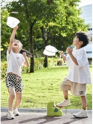 Podprite zdrav gib otrok z izstreljevalnikom diskov KRUZZEL. Preprost mehanski pogon brez potrebe po napajanju zagotovi, da se zabava začne takoj – pritisnite ročno/nožno pumpico in opazujte vrteč se padajoči let barvnih diskov, ki spominja na odpadanje listja.