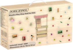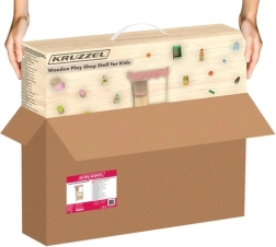 Odkrijte čar trgovinice doma – leseni supermarket KRUZZEL s stojnico, blagajno, tehtnico in bogatim kompletom živil ponuja otrokom od 3 let ure kreativne igre vlog. Stabilna konstrukcija iz lesa in MDF, varni zaobljeni robovi in kar 25 delov v kompletu zagotavljajo zabavo in učenje – od razvrščanja sadja in zelenjave do prvih »plačil« s kartico in uporabe tehtnice.