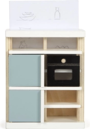 Podrobno izdelana lesena kuhinjica je odličen dodatek vsaki hiški za punčke. Vsebuje moderno kuhinjsko linijo, otok s kuhalno ploščo in kompleten jedilni set za udobno igro in razvoj ustvarjalnosti.