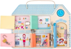 Ta motorična tabla je idealna igrača za otroke od 3. leta dalje. Pomaga razvijati fino motoriko in logično razmišljanje preko interakcije s ključavnicami in varovali.