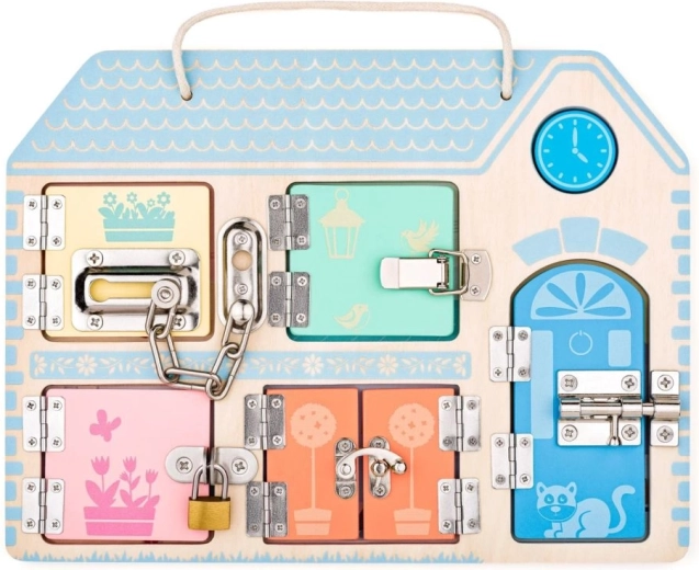 Odkrijte odličen izobraževalni pripomoček za vaše otroke! Motorična tabla z motivom ključavnic in varovanj prinaša razburljive in zabavne izkušnje.