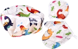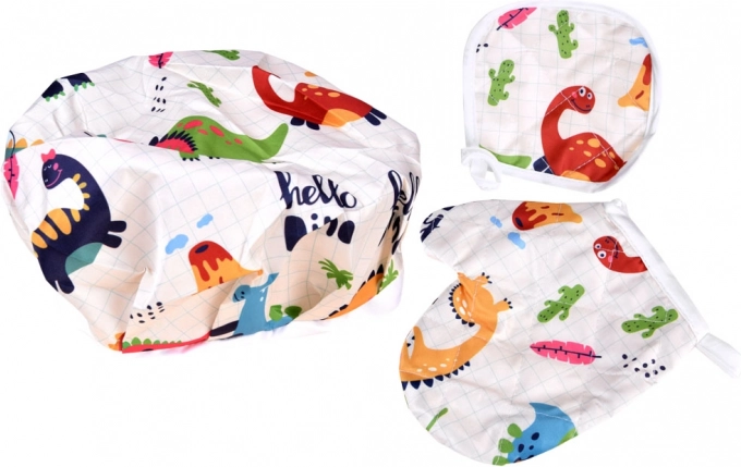 Predpasnik in kuharska kapa z motivi dinozavrov bosta iz vsakega malega pomočnika naredila pravcatega mojstra. Žive barve in edinstveni dizajni naredijo kuhanje še bolj zabavno.