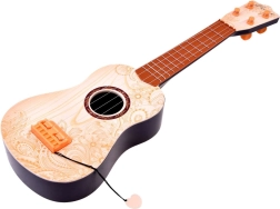 Ta igrača–kitara je zasnovana za male glasbenike, ki imajo radi glasbo in želijo preizkusiti svoje prve akorde. Plastično telo v imitaciji naravnega lesa deluje profesionalno, hkrati pa je lahko in odporno za otroške roke.