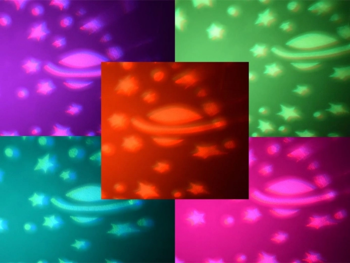- Projektor nočne svetlobe projicira na strop in stene sobe lepe podobe zvezd, lune in planetov, ki pomagajo otrokom pri sprostitvi.