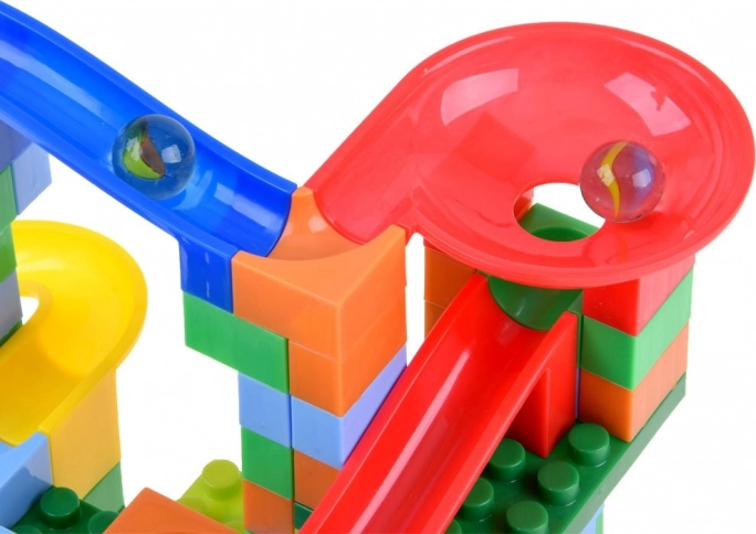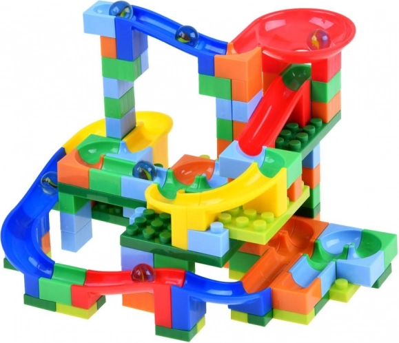 Ta barvita kroglična proga iz gradbenih blokov je idealna izbira za otroke, ki radi ustvarjajo in odkrivajo. Set vsebuje raznoliko oblikovane in raznobarvne bloke za gradnjo prepletenih prog za kroglice.