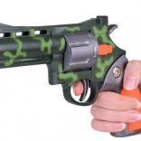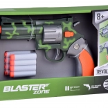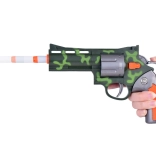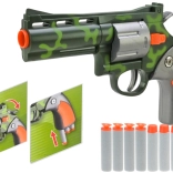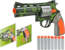 Set vsebuje kompaktno pištolo z kamuflažnim vzorcem, ki jo je udobno držati v eni roki. Naboji iz pene in mehke gume zagotavljajo največjo varnost in lahkotnost. Set vsebuje 6 nabojev.