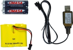 V paketu dobite avto, upravljalnik, polnilno baterijo 4,8 V 700 mAh, 2× AA bateriji in USB polnilnik – le vklopite in se odpeljite.