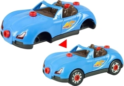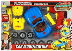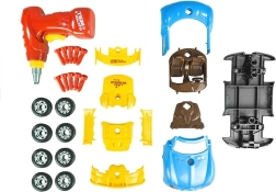 Komplet vsebuje 30 komponent, vključno s karoserijo, kolesi, vijaki in dodatki. Vrtalnik napajajo baterije 2× AA (niso priložene), luči in zvoke vozila zagotavljajo baterije 2× AG13 (so priložene). Zahvaljujoč enostavni montaži otroci urijo fino motoriko, logično razmišljanje in kreativnost.