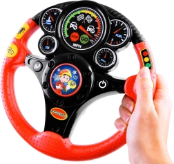 Otroški interaktivni volan je odličen spremljevalec doma in na poti. Ponuja avtentične učinke kot so hupa, smerniki, zvok vožnje, zaviranje in osvetljen merilnik hitrosti. Zahvaljujoč vibracijski povratni informaciji otroci dobijo občutek prave vožnje, hkrati pa se na zabaven način učijo prometnih situacij.