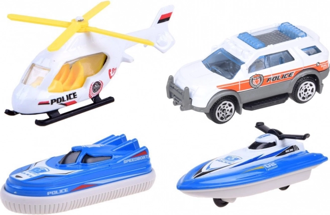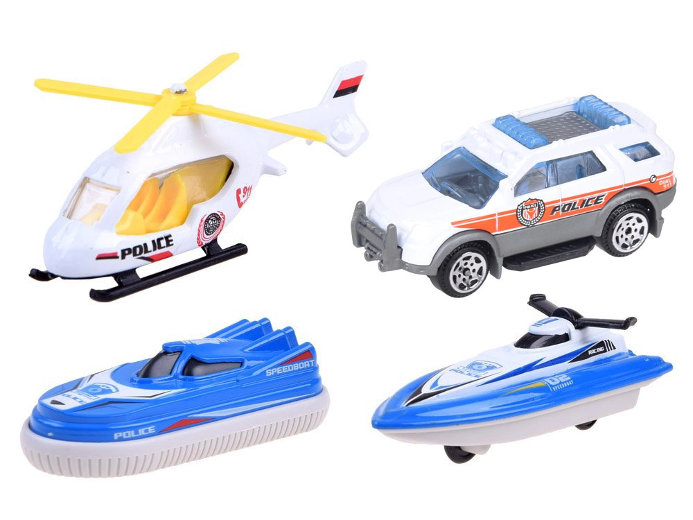 Del seta so tudi policijska dostavna vozila (furgon), skuter in zračna blazina – vznemogljivec (hovercraft), ki jih je mogoče zlahka speljati po rampi. Zahvaljujoč prosto vrtečim se kolesom na vozilih in dovršenim detajlom je igra tekoča in zabavna. Set dopolnjujejo steze za vozila, prometni znaki, sidro in drugi dodatki za ustvarjanje lastnih zgodb.