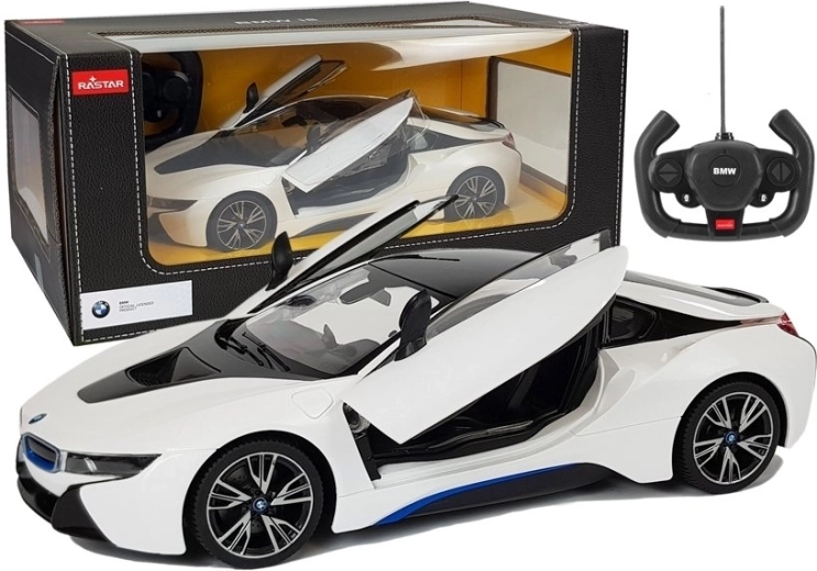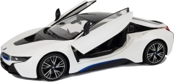 Podrobna karoserija in interier zvesto posnemata pravi BMW i8. Model v merilu 1:14 deluje elegantno in dinamično tako na polici kot v akciji.